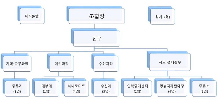 조합원의 농업생산성을 제고하고 조합원이 생산한 농산물의 판로확대 및 유통원활화를 도모하며, 조합원이 필요로 하는 기술, 자금 및 정보 등을 제공함으로써 조합원의 경제적, 사회적, 문화적 지위향상 도모.